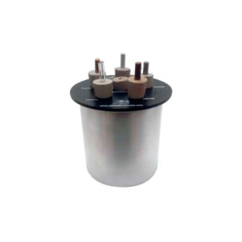 Elemento que permite estudiar la conductividad térmica de algunos elementos. · Compuesto de:· 1 recipiente en aluminio.· 5 varillas de diferentes materiales (Cobre, Hierro, Aluminio, Bronce, Vidrio), ajustadas en una tapa de poliestireno por medio de tapones de caucho.· Dimensiones: 100 mm profundidad, 120 mm de diámetro de la tapa.