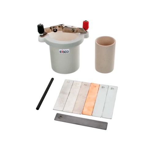 Útil para transformar energía química en energía eléctrica.· El juego incluye una celda de plástico para estudiantes completa con un anillo de plástico con tornillo, dos porta electrodos ajustables, una taza de cerámica porosa y ocho electrodos: 1 de· aluminio, níquel, estaño, grafito, hierro, cobre y 2 de zinc.