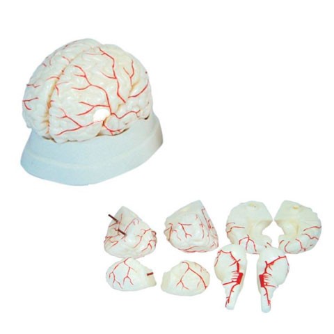 Demuestre las características externas del cerebro humano y su suministro arterial en conjunto, así como las relaciones entre sus partes componentes.· Características externas del cerebro: hemisferio cerebral, tallo cerebral, cerebelo.· Suministro arterial del cerebro: vértebras, arterias carótidas internas, suministro de arterias del cerebelo y el cerebro.· Fabricado en PVC resistente.· Desmontable en 8 partes.· Incluye base