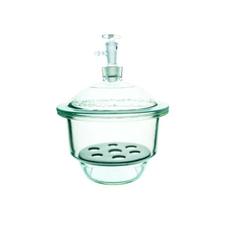 Elaborado en vidrio borosilicato 3.3 de alta resistencia.· Permite hacer vacío después de cerrado, disminuyendo el tiempo de desecación.· Con plato de porcelana con orificios.· Incluye llave.· Diámetro: 240mm/ 24cm.
