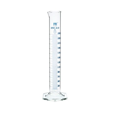 PROBETA 250ML VIDRIO BASE HEXAGONAL - GRADUACION AZUL -CLASE A CH0345L