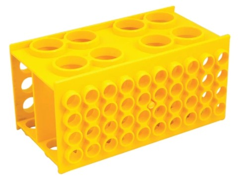 Gradilla para tubos de ensayo muy versátil· Sostiene 4 tubos de diferentes diámetros (30 mm, 20 mm, 17 mm, 12 mm)· Fácil de limpiar· Plástico resistente a productos químicos, duradero para años de uso en el laboratorio o en el aula.