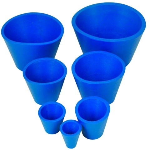 JUEGO DE 7 || Conos adaptadores de filtro cónicos de color azul de tamaño 1-7· PARA EMBUDOS BUCHNER || Diseñado para usar con embudos Buchner en conjuntos de filtración· DURADERO Y RESISTENTE || Hecho de caucho de neopreno flexible de calidad - Buena estabilidad química y puede soportar un amplio rango de temperatura - Esterilizable en autoclave· APILABLE || Se puede anidar dentro de conos de diferentes tamaños para un almacenamiento conveniente· MEDIDAS || Los conos varían en tamaño - Altura: 20 mm a 43 mm, Superior: 22 mm a 81 mm, Inferior: 11 mm a 57 mm