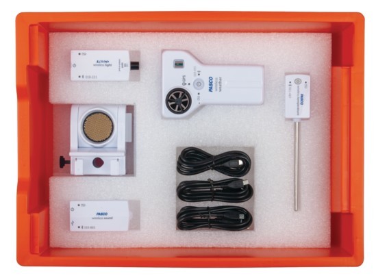 Incluye los dos sensores inalámbricos complementarios a la estación de laboratorio inicial de ciencias primarias.