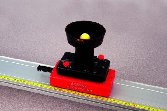 El accesorio de carro balístico inteligente se monta en cualquier carro dinámico PASCO para una demostración clásica sobre la independencia del movimiento X e Y. Un proyectil disparado desde el accesorio mientras un carro está en movimiento quedará atrapado más abajo en la pista. Cuando se monta en un carro de aluminio PASCO, o PAScar, el proyectil se lanza mediante un botón de retardo del temporizador. Cuando se conecta a un Smart Cart de PASCO, el accesorio balístico inteligente puede lanzar el proyectil según las mediciones realizadas por el Smart Cart en el software Sparkvue o PASCO Capstone.