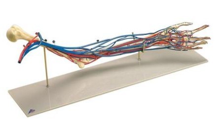 Codigo 1005109 [W19019]· Modelo de tamaño natural de brazo y mano izquierdos en posición de semi-flexión con las arterias humeral, radial y cubital y venas acompañantes con sus ramas in situ.