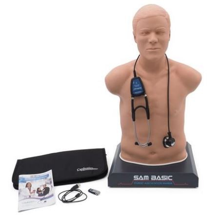 El maniquí de formación en auscultación SAM Basic® Maniquí asequible de auscultación - Adulto está diseñado para enseñar y practicar la auscultación en adultos como una técnica clínica esencial para evaluar condiciones cardiacas, pulmonares, intestinales y de ruido.